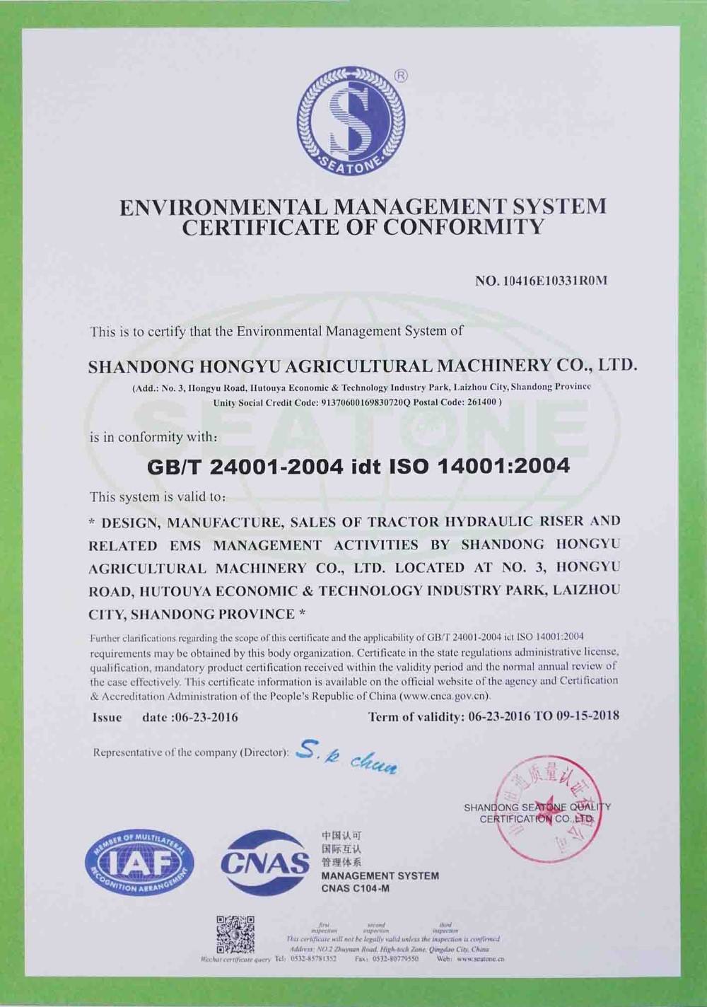 Passed the ISO14001:2004 environment system authentication