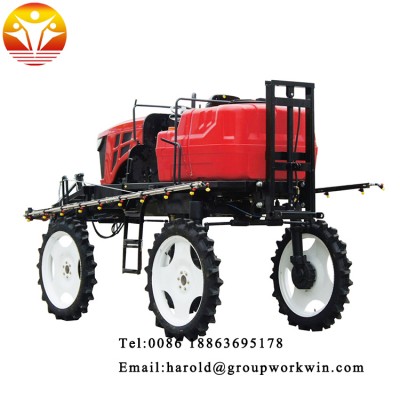 This machine is composed by the vehicle Drive system, Spraying system and Fertilizing system. Vehicle Drive system include of chassis, engine, gearbox, axle, rim, battery, hydraulic system, braking system, lighting and signal system and safety signs. Spraying system includes opening, closing and lifting mechanism of spray boom, sprayer components, pipeline, pressure controller, spray pump, liquid box, suction pipeline, etc. Spray pump is diaphragm pump with compact structure, stable discharge pressure, corrosion resistance advantages.