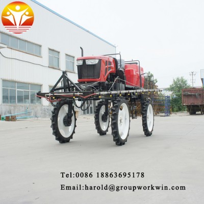 Self-propelled agriculture boom sprayer has good performance and high efficiency. It can be controlled the pests of early, middle and late for a variety of crops. The sprayer focused on wheat, corn, rice, soybeans, cotton, tobacco, vegetables, sugar cane, sorghum, potatoes and other crops pre-disease prevention and control of spraying and field management operations. Can effectively carry out large-scale spraying of crops, flexible and convenient handling.
