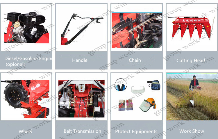 Mini Self-Walking Grain Havester is mainly used to harvest the paddy and wheat. It could also be used to harvest the soybeans, hot pepper and reeds. It is applicable in the plain, hills, slopes, small field, etc. In addition, it is with the advantages of small volume, small weight, flexible performance and simple operation.