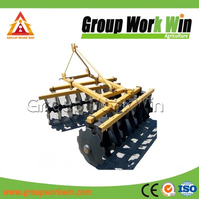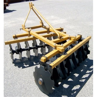 Disc harrow.Taking groups of concave disks as working parts, the blade plane of the rake blade is perpendicular to the ground and has an adjustable Angle with the direction of the unit.During the operation, under the action of tractor traction and soil reaction force, the rake plate rolled forward, the rake blade cut into the soil, cut off the grass roots and crop stubble, and made the soil fall down after rising a certain height along the concave surface of the rake plate.It can mix fertilizers and pesticides on the surface with topsoil, and is widely used in shallow tillage after crop harvest, soil conservation in early spring, and soil breaking after ploughing, etc. It can also be used for seed covering after plane sowing.According to the configuration of rake set, it can be divided into three types: single row type, double row opposite type and offset type