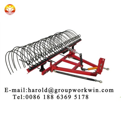 9LZ series side-delivery rake is very simple for swath width adjustment and perfect to adapt to the baling width. Solid suspension frame, can satisfy the more horsepower, by encryoting tine can hug scattered set of forage grass, the remnants of crop straw, and the residual film from the soil.