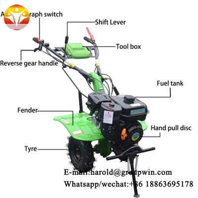 3. With quick coupling,easy to change farming implements. Cultivator,mower,trailer,water pump,power tiller,snow blower,rotary plough,etc.